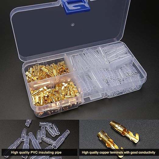200 ADET 3.9 mm Bullet Konnektörler Kiti Pirinç Bullet Erkek ve Dişi Tel Terminalleri Konektörü Yalıtım Kapaklı Konnektör, Motosiklet Araba Kamyon Scooter Tekneler Elektrikli Enstrümanlar için,