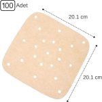 200 Adet Air Fryer Pişirme Kağıdı Tek Kullanımlık Hava Fritöz Yağlı Kağıdı Kare Delikli ve Tabak Model