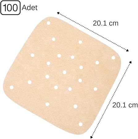 Air fryerlar için bu kağıt altlıklar yağ ve su geçirmez ve gıdalara yapışmaz, bu da air fryerın temizlenmesini ve bakımını kolaylaştırır. Kullanımı kolay, hafif ve pratiktir ve her yemeğin tadını etkilemeden en iyi şekilde görünmesini sağlar. Pişirme sürelerini etkilemez, pişirme kağıdının ısıyı aynı şekilde iletme özelliği vardır. Air fryer için özel üretilmiştir, katlamaya, kesmeye ve bükmeye ihtiyaç yoktur.