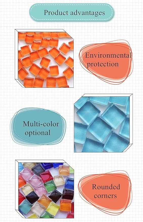 Özellik: Parıltılı mozaik, yüzeyi pürüzsüzdür, ellerinize zarar verir, eşit kalınlık, daha parlak ve yakından daha güzel; bu mozaiklerin rengi asla kaybolmaz