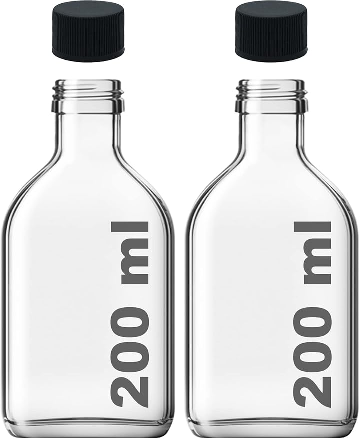 200 ml Yassı Şeffaf Cold Brew Şişesi Plastik Siyah Kapaklı 200 cc Soğuk Kahve Cam Şişe 2 Adet