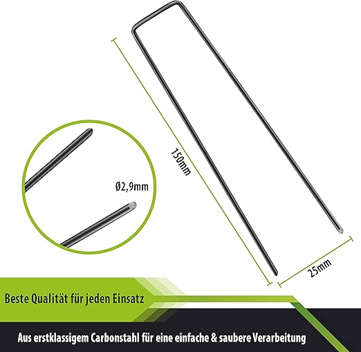 Birçok kullanım alanı: Çapalarımız yabani ot keçesi, zemin dokusu, çim koruma ızgarası, yabani ot kumaşının sabitlenmesi ve aynı zamanda hortumların ve kabloların zemine sabitlenmesi veya sabitlenmesi için uygundur.