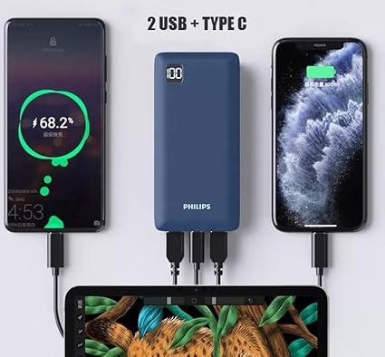 20000 mAh Hızlı Şarj ve Çoklu Çıkışlı Taşınabilir Powerbank – USB ve Type-C PD, LED Ekran – 3 Cihazı Aynı Anda Şarj Edin