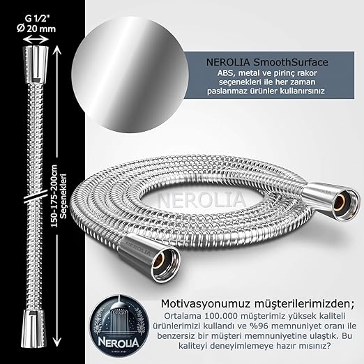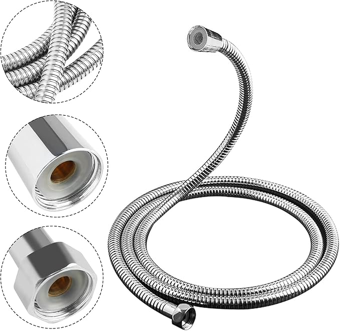 200cm Paslanmaz Çelik Çift Kenetli Uzun Duş Spirali/Patlamaya Dayanımlı Banyo Hortumu (Her Duş Başlığı ile Uyumludur)