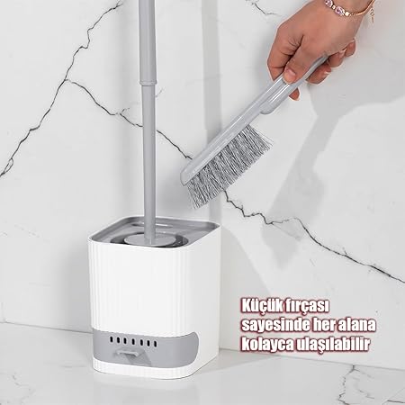 2026 Pratik Temizlik Tuvalet Fırçalığı Banyo Tuvalet Fırçası Wc Fırçası – Gri Beyaz