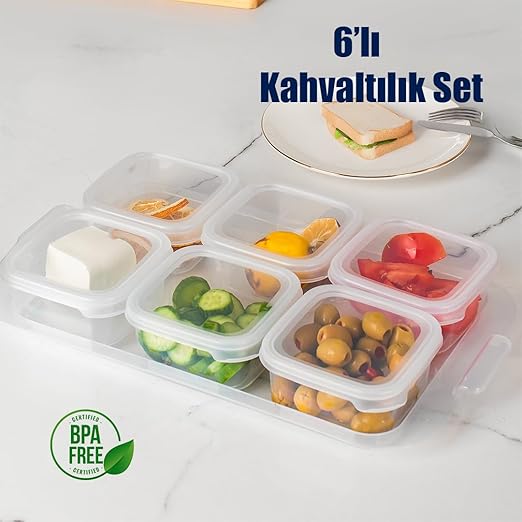 2043 Tepsili Kahvaltılık Kapaklı Kahvaltılık 6 Bölmeli Sızdırmaz Kapaklı Bölmeli Şeffaf