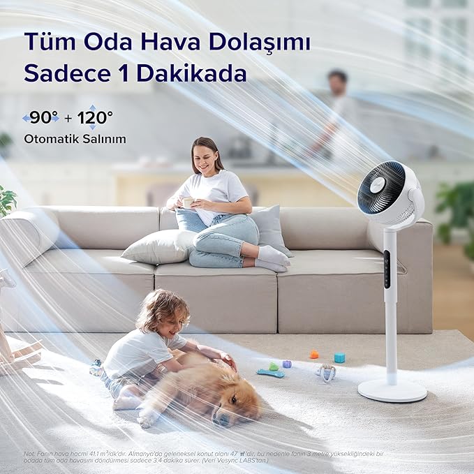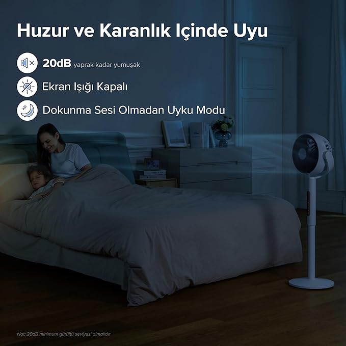 20 dB sessiz fan LEVOIT uyku modlu ayaklı fan sessiz çalışır Ekranı kapatarak siz ve ailenizin rahatsız edilmeden uyumasını sağlar