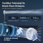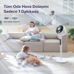 20dB Ayaklı Fan, Sessiz, Sensörlü ve Uzaktan Kumandalı, Salınımlı, Saatte 2465 Metreküp Hava Hacmi, Dört Dakikada Hava Sirkülasyonu, Dört Mod, 12 Seviye, 12 Saat Zamanlayıcı
