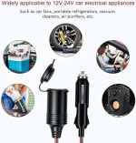 Kullanılan uyumluluk, çeşitli elektrikli şarj cihazları için 13 ft uzunluk, seyahat veya kamp, hava pompası, vakumlu temizleyici, lastik şişirme, şarj, buzdolabı ve daha fazlasında yaygın olarak kullanılır.