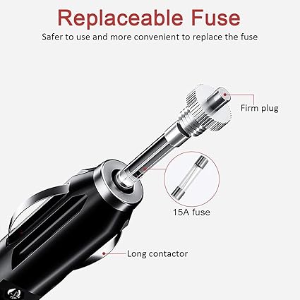 Araç üzerindeki sigara çakmak soketine takılan erkek, 12 V – 24 V DC voltaj girişi. Güvenli tutmak için 15a sigortalı uzatma kablosu build