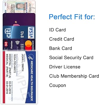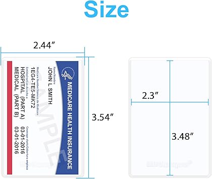 Yeni Medicare Kart Tutucu Koruyucu Kılıflar, cüzdan boyutu ekleri; ayrıca NHS aşı kartları, sosyal güvenlik kartları, kartvizitler, kredi kartları, bant kartları, ehliyet, kimlik kartları, üyelik kartları veya benzeri standart boyutlu kartlara da uyar.
