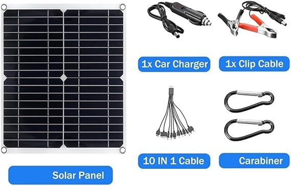 【Tak ve Çalıştır】: 2 USB bağlantı noktası ve 10’u 1 arada çok işlevli kablo ile donatılmış bu güneş paneli çok çeşitli cihazlarla uyumludur. Sadece prize takın ve şarj etmeye başlayın, kesintisiz güç kaynağı sağlayın.