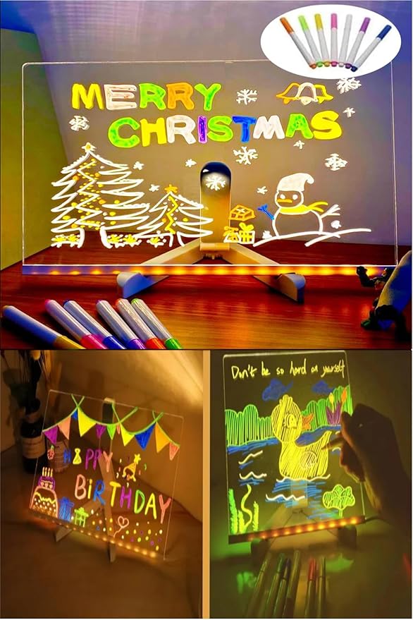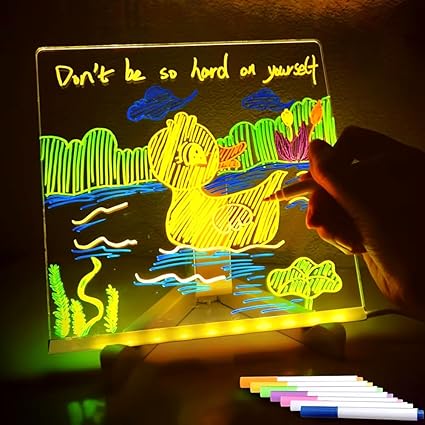 TİNEKE 20×20 Led Işıklı Yazı Çizim Tahtası Ayarlanabilir Stant Ve Hediye 7 Keçeli Kalem