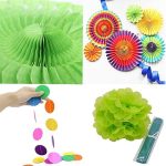 Paket — 8 adet ponpon çiçek, 6 adet kağıt yelpaze, 4 adet içi boş kağıt yelpaze, 1 adet kağıt flama zinciri, 2 adet noktalı çelenk alırsınız. Bu set bir parti dekorasyonu için ihtiyacınız olan her şeyi içerir.