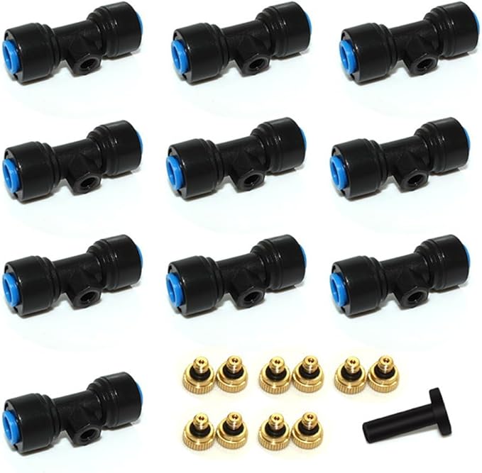 21 ADET Sis Soğutma Nozulu, Pirinç Sis Nozulları ile T-Parça Su Borusu Konektörü Sulama Sistemi, Püskürtme Memesi Açık Sisleme Sistemi