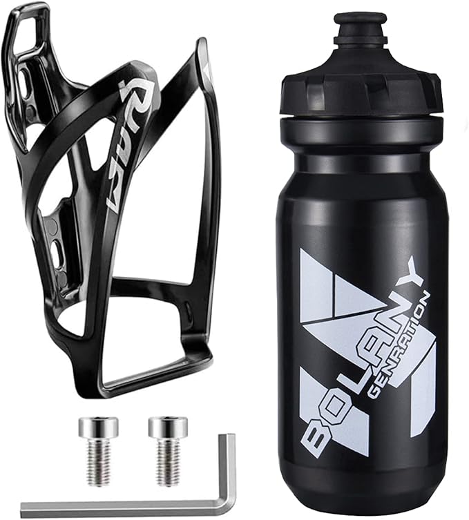 21 Oz bisiklet şişesi ile şişe kafesi, vidalı hafif içecek tutucu – Bisiklet, yol bisikleti, dağ bisikletleri, elektrikli bisikletler için BPA içermeyen içme şişesi (siyah)