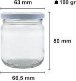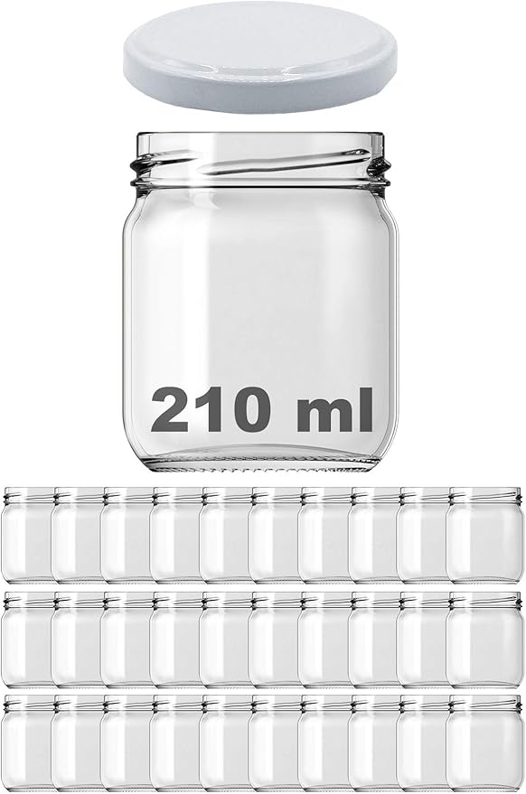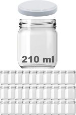 210 ml Metal Beyaz Kapaklı Şeffaf Cam Kavanoz 30 Adet