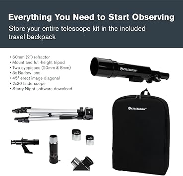 Teleskop ve tripod, kolay seyahat ve saklama için sırt çantasına (dahil edilmiştir) uygundur