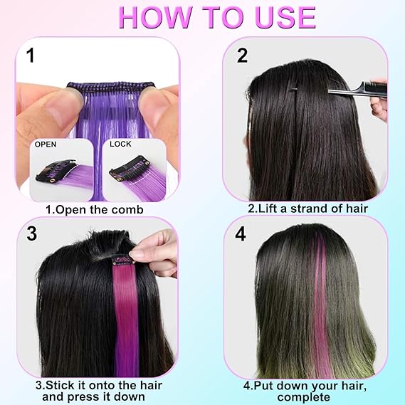 Kullanımı kolay – Her saç eklentisi, saçınıza kolayca takılabilen küçük bir klips ile donatılmıştır ve klips, kafa derisini iyi koruyan ve çıkarırken saçlara dolanmasını önleyen dalgalı bir tasarıma sahiptir.