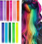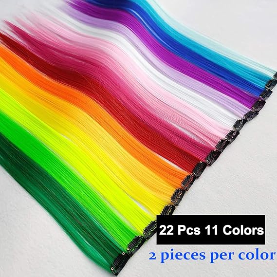 22 adet renkli postiş, 50 cm ısıya dayanıklı renkli saç parçaları, renkli postiş, kadınlar, kız çocukları için, parti, festival dekorasyonu