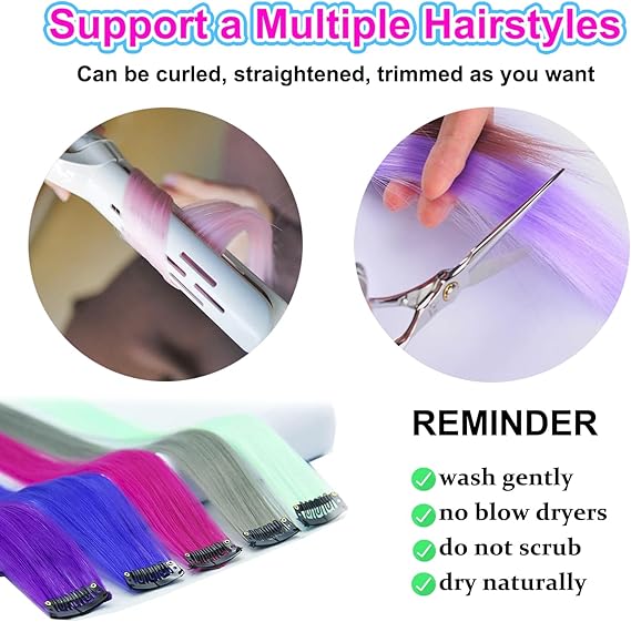 Renkli ve canlı renkler: Kendin yap saç modelinizi karşılamak ve moda zevkinizi göstermek için 22 adet klipsli postiş alacaksınız. Parti vurgulu saç parçamız 50 cm uzunluğundadır, kendi saçınıza göre kesilebilirsiniz, bu da size daha doğal bir uyum sağlar.