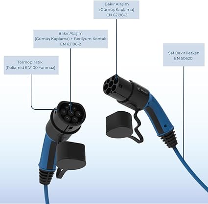 Type 2, Tüm araçlara uygunluk, Holojen free kablo, IP54 Koruma Sınıfı