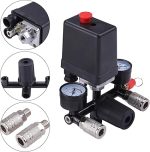 ️【Hava kompresörü basınç valfi anahtarı】: Basınç şalteri basınç düşürücü piyasadaki çoğu hava kompresörü için uygundur. Cihaz, manometre, iki Euro hızlı kavrama ve bir emniyet valfi adı verilen iki ölçüm göstergesi ile donatılmıştır.