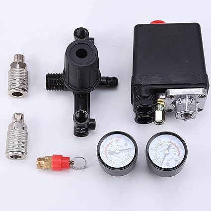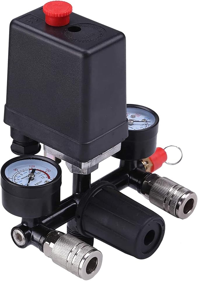 ️【Hava kompresörü basınç valfi anahtarı】: Basınç şalteri basınç düşürücü piyasadaki çoğu hava kompresörü için uygundur. Cihaz, manometre, iki Euro hızlı kavrama ve bir emniyet valfi adı verilen iki ölçüm göstergesi ile donatılmıştır.