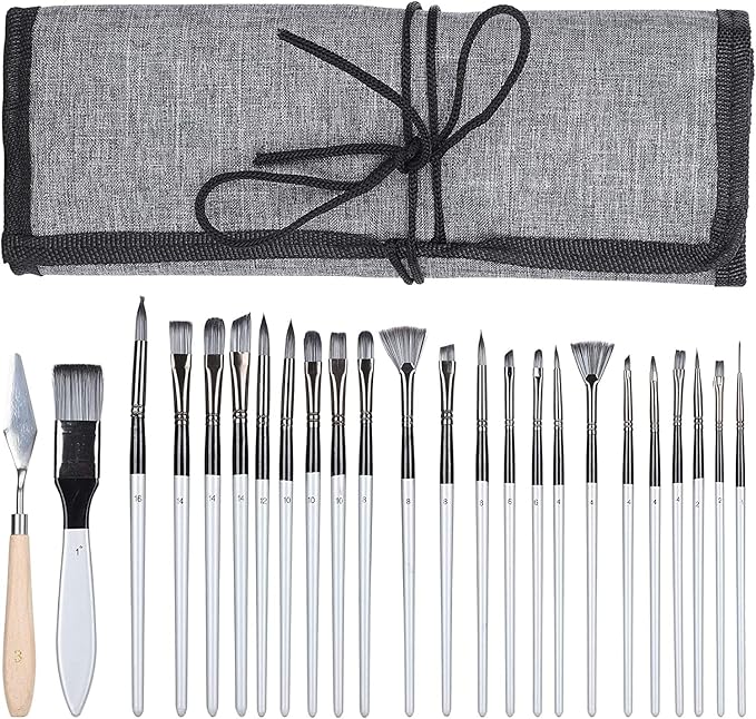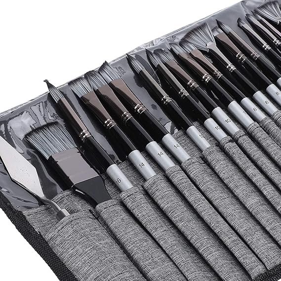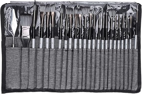 24 Parça Akrilik Yağlıboya Suluboya Guaj Boya Fırça Seti Sentetik Fırça Ahşap Sap Kullanışlı Çanta