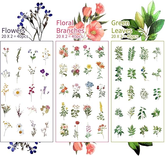 240 Yaprak Scrapbook Çıkartmaları Çiçek Çıkartmaları Dekorasyon Çıkartması Planlayıcı Çıkartmaları Plastik Bitki Çıkartmaları Scrapbooking Günlüğü Albüm Dergiler DIY için Monet, Mayplous