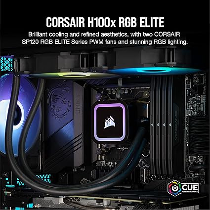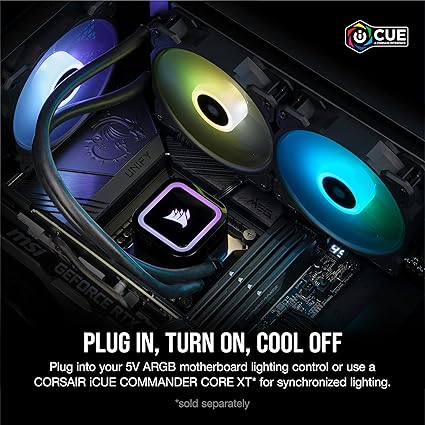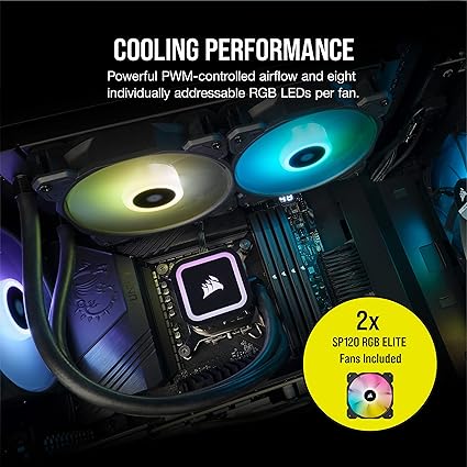 240 mm radyatör ve iki adet 120mm CORSAIR SP RGB ELITE Serisi AirGuide fan ile soğutulur, 400 ila 1.500 RPM arasında güçlü PWM kontrollü hava akışı ve fan başına sekiz ayrı ayrı adreslenebilir RGB LED sunar.