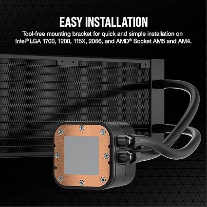 Yüksek performanslı, sessiz soğutma için önceden uygulanmış termal bileşik ve düşük gürültülü pompa tasarımına sahip termal olarak optimize edilmiş bakır soğuk plaka ile donatılmıştır.