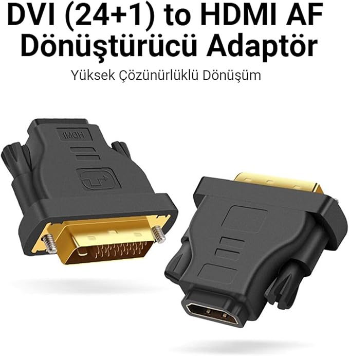 VegGieg DVI 24+1 to HDMI Dönüştürücü Adaptör, DVI çıkışına sahip görüntü kaynaklarınızı HDMI bağlantılı cihazlarla uyumlu hale getirir. 1080p çözünürlüğe kadar destek sunan bu dönüştürücü, altın kaplama konnektörleri sayesinde yüksek görüntü kalitesi sağlarken, dayanıklılığıyla da uzun süreli bir kullanım imkânı tanır.
