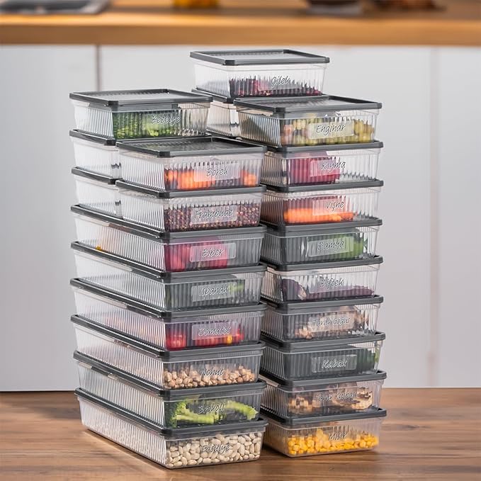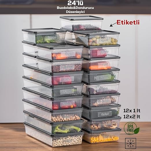 24lü Buzdolabı Düzenleyici Derin Dondurucuya Uygun Etiketli Buzluk Bakliyat Saklama Kabı – Antrasit