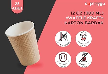 12 oz (300 ml) “Waffle Kraft” kabartmalı kağıt bardaklarımız, dikkat çekecek ve rakipler arasında öne çıkacak benzersiz bir kabartmaya sahiptir