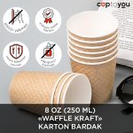 8 oz (250 ml) “Waffle Kraft” kabartmalı karton bardaklarımız anında dikkat çeken hoş bir dokunuşa sahiptir ve insanların günlük yaşamlarına benzersizlik katar