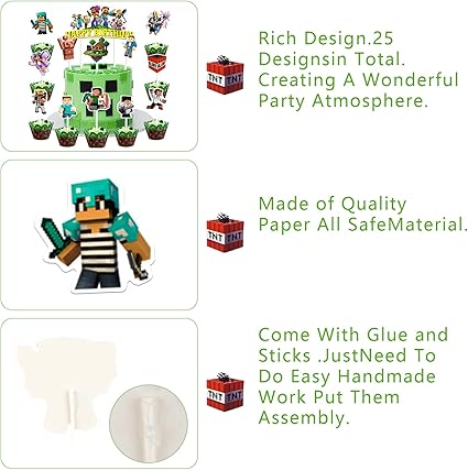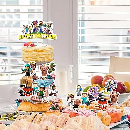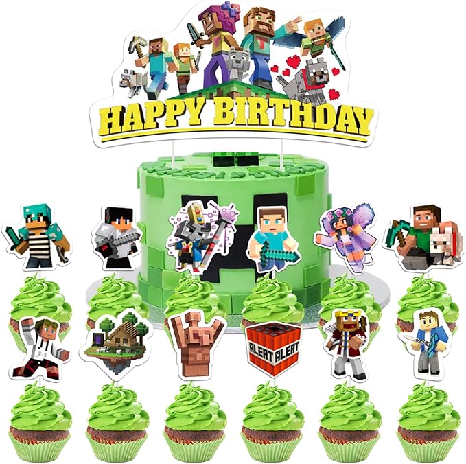 25 adet Pixe pasta dekorasyonu, genç çocuklar için, video oyunu, pasta dekorasyonu, çocuk doğum günü, pasta süsü seti, doğum günü partisi pasta dekorasyonu malzemeleri (D)
