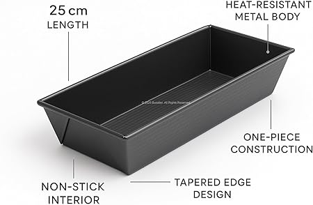 25 cm Baton Kek Kalıbı Yapışmaz Kaplamalı Metal Dikdörtgen Kalıp Eşit Isı Dağılımlı Kolay Temizlenebilir Alman Kalitesi Ev ve Profesyonel Mutfaklar için Uygun