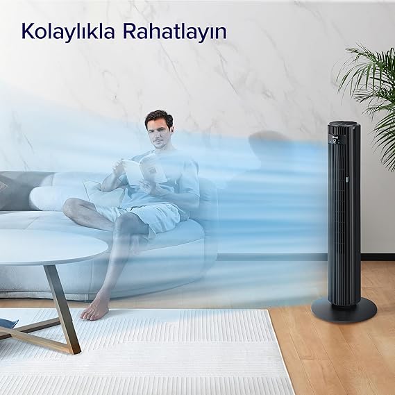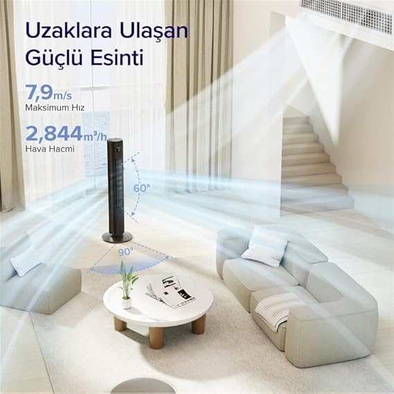 Kule fanının rüzgar hızı 7,9 m/s’ye ulaşır Tüm evin hızlı bir şekilde soğutulmasını sağlar