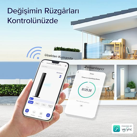 Classic Pro Akıllı Kule Fanı dört farklı kontrol seçeneği sunar: Dokunmatik düğmeler Uzaktan kumanda Uygulama Alexa ses kontrolü