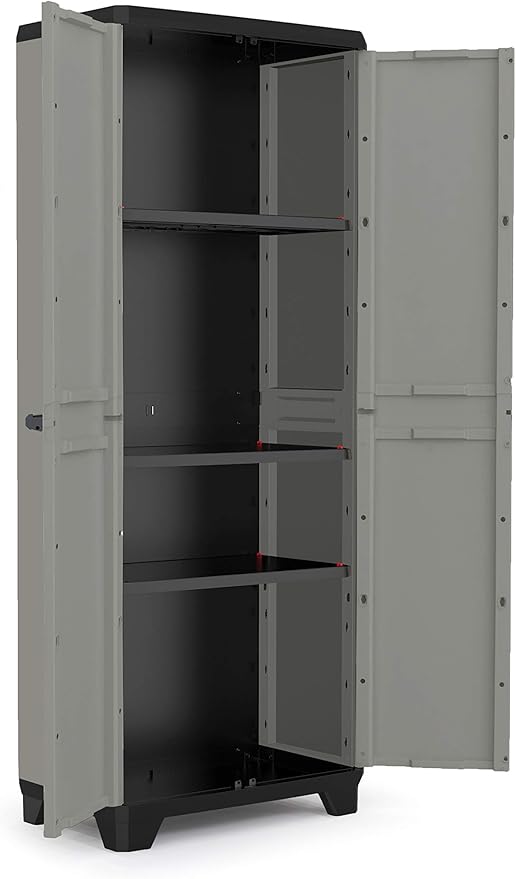 Her biri 15 kg kapasiteli yüksekliği ayarlanabilir üç raf. Ayakların yüksekliği ayarlanabilir
