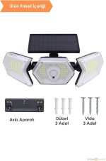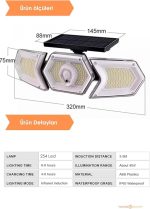 254 Ledli Hareket Sensörlü Solar Projektör Güneş Enerjili Led Bahçe Lambası Şarj Olan
