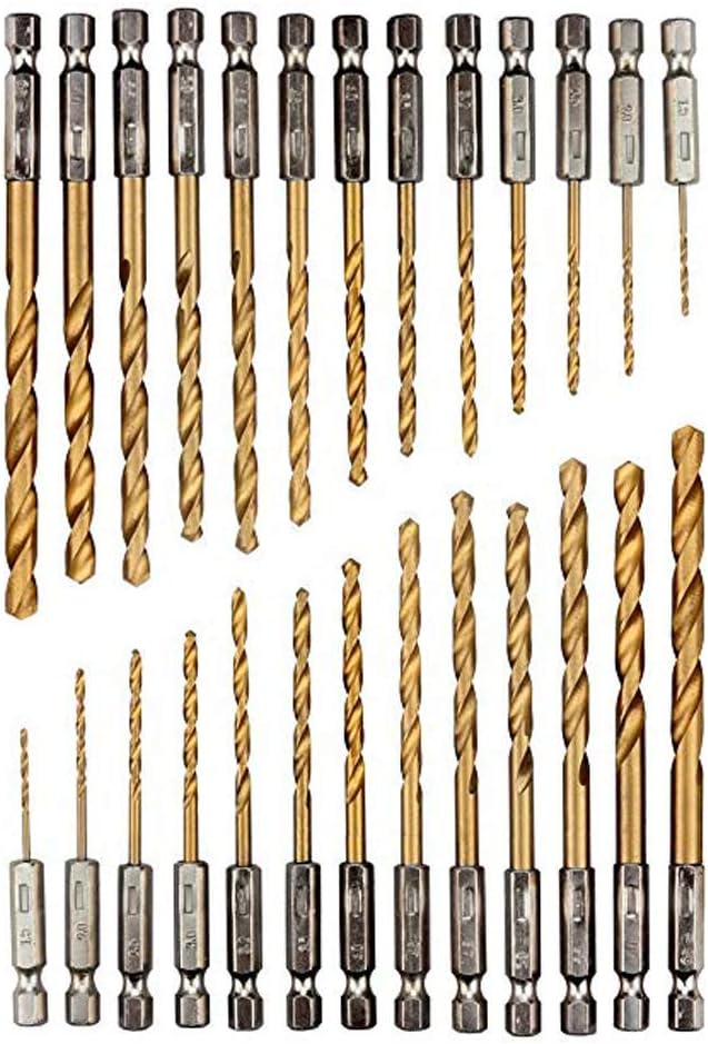 26 parçalı titanyum matkap seti, altıgen şaft, hızlı matkap ucu, 1,5-6,5 mm yüksek hızlı çelik, titanyum kaplamalı HSS matkap seti, hızlı değiştirme, 1/4″ altıgen şaft