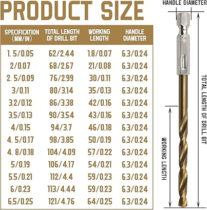 【Malzeme】 Hızlı çelik yüzey, titanyum kaplama, 13 boyut: 1,5 mm, 2 mm, 2,5 mm, 3 mm, 3,2 mm, 3,5 mm, 4 mm, 4,5 mm, 4,8 mm, 5 mm, 5,5 mm, 6 mm, 6,5 mm.
