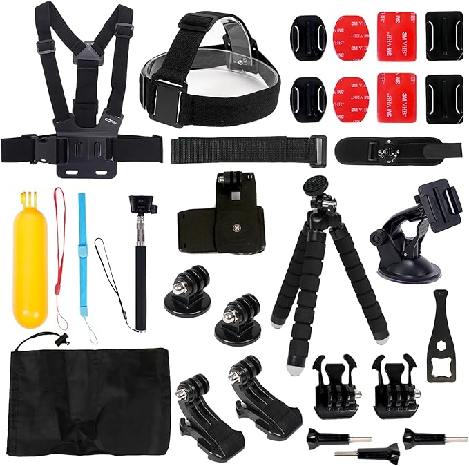 27 Parça Aksiyon Kamera Aksesuar Seti – GoPro ile uyumlu, DJI ile uyumlu, Spor Montaj Kiti Vlog Seyahat Çekim Aparatları | KS-1