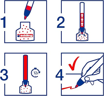 edding BTK 25 yedek mürekkep ve edding BT 30 yedek mürekkep ile yeniden doldurulabilir