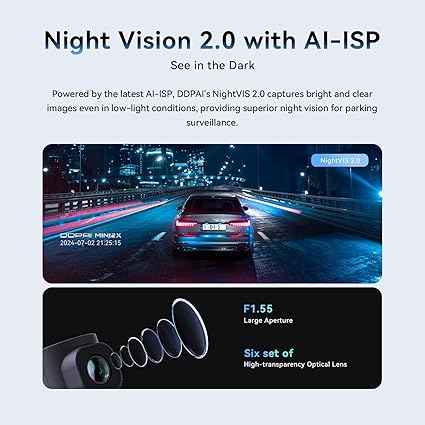 【Süper Gece Görüşü2.0】Gelişmiş CMO Sensör NightVIS Vision2.0 ile güçlendirilen ddpai çizgi kamerası, WDR görüntü algoritması teknolojisi ile birlikte geniş F1.55 diyafram açıklığı ile donatılmıştır, gündüz veya gece sürüşünüzde optimum görünürlük sağlar. Plakalar, yayalar ve tabelalar gibi ayrıntıların tümü, gece sürüşünü sağlamak için düşük ışık koşullarında net bir şekilde kaydedilebilir Güvenlik.