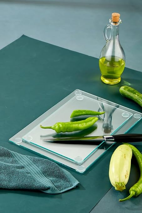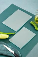 2’li (20 * 30)(25 * 35) Şeffaf Temperli Cam Kesme Tahtası – Isıya Dayanıklı, Kırılmaya Dayanıklı