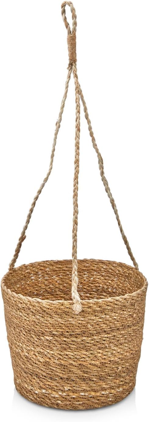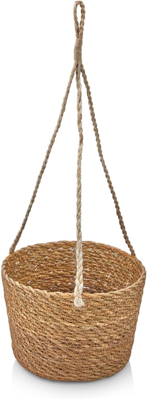 2’li Asılabilir El Yapımı ve Doğal Yuvarlak Hasır Saksılık Seti, 2’li İpli Asılabilir Hasır Yuvarlak Saksı Seti (23cm*18cm-20cm*15cm)