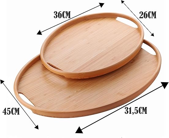 2’li Bambu Tepsi Seti, İnce Tasarım Özel Üretim Oval 2’li Bambu Tepsi Seti (36 * 26 * 1cm-45 * 31.5 * 1cm)